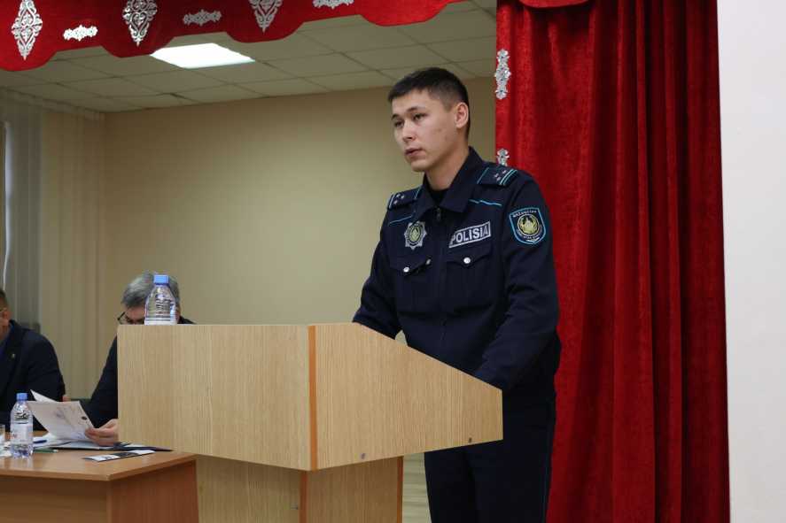 Аким района проинформировал жителей о социально-экономическом развитии района за текущий год. Вместе с ним держали отчет и полицейские.