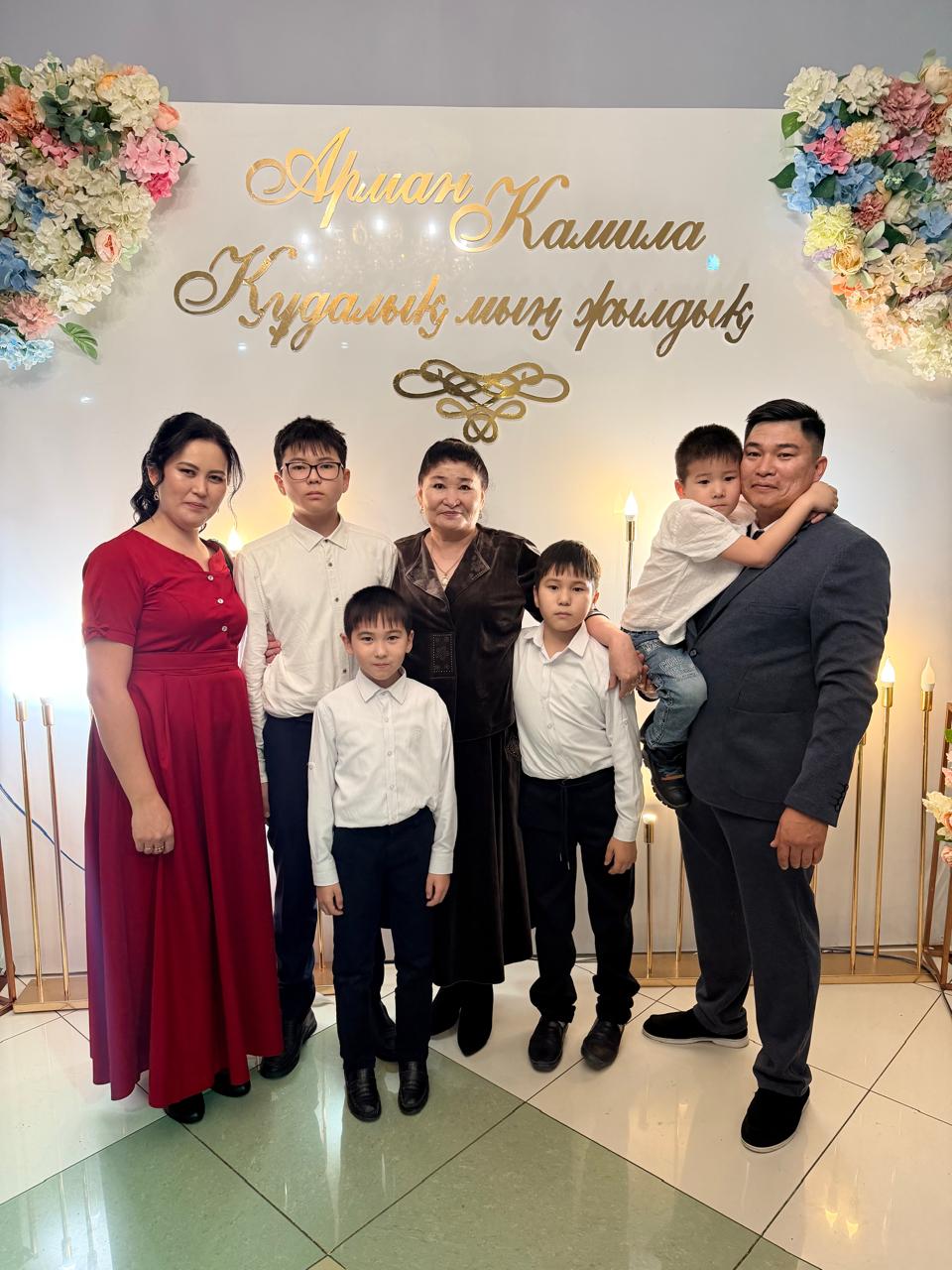– Жұбайыммен колледж қабырғасында танысқан болатынбыз. Сол уақытта мен 1 курс, ол 3 курс студенті еді. Біраз уақыт достасып, кездесіп, 2010 жылы өз шаңырағымызды құрдық. Кейіннен 2011 жылы дүниеге тұңғыш ұлымыз Мансұр дүниеге келіп, шаңырағымыз шаттыққа бөленді. Бүгінде Мансұр – біздің қолқанатымыз, артынан ерген бауырларына қамқор, жауапкершілігі мол азамат болып өсіп келеді. Екінші ұлымыз – Мирас, 2015 жылы дүниеге келді. Ағасынан үлгі алып, өсіп келеді. Үшінші ұлымыз Санжар 2016 жылы дүниеге келді. Қимылы ширақ, ойын баласы болса да інісіне қамқор, әрдайым ойнатып, көңілін аулап жүреді. Кенже ұлымыз Ерасыл 2021 жылы дүние есігін ашты. Ерасыл – үйдің еркесі, ағаларының ортасында еркелеп жүрген кішкентайымыз. Ұл балалардың анасы болу мен үшін үлкен бақыт. Ұлдарымыздың тәрбиесіне көбінесе жұбайым қатты атсалысады. «Әке көрген оқ жонар» демекші, балаларды өзіме жақын тартсамда, әрдайым әкенің орны, дәрежесі жоғары екенін кішкентай кездерінен айтып отырамын. Бүгінде ұлдарымыз әкелеріне өте жақын, әр кез үлгі алып, әкелеріне қарап бой түзеп өсіп келеді, – дейді Гүлжан Амангелдіқызы